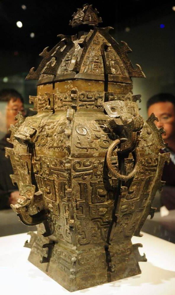 1983年出土于宁乡县,重达221.5公斤。其中最为有趣的是燧部,装饰有一对扬起鼻子互相碰撞的小象。