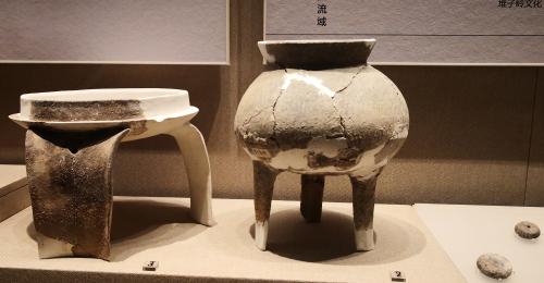 大塘文化中常见的一种炊器,主要用于烹饪食物和烧水。这三个支座保存完好,向我们展示了陶釜的使用方法,支座将陶釜支撑起来,底部空间则用以生火烹饪食物,是陶鼎的雏形。