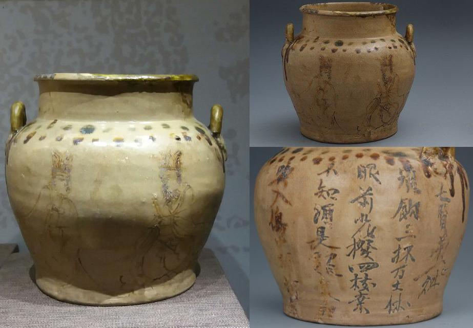 湘阴窑烧制的作品。鸡首造型均为雄鸡,因为雄鸡有辟邪消灾的作用,且“鸡”与“吉”谐音,反映了人们对吉祥安宁生活的期望。