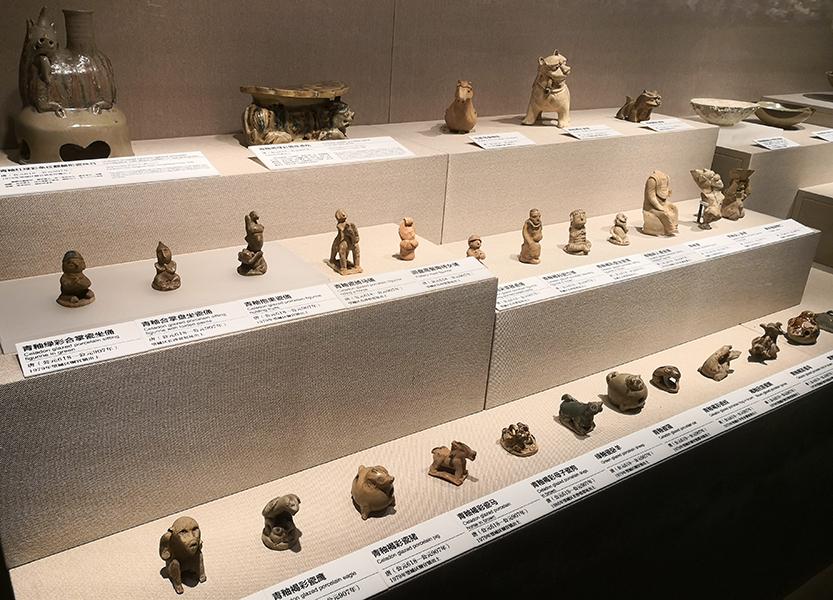 古人用于陪葬的“明器”。人物俑有奴仆、侍卫等,寄托了人们希望死后同样也能有人服侍。