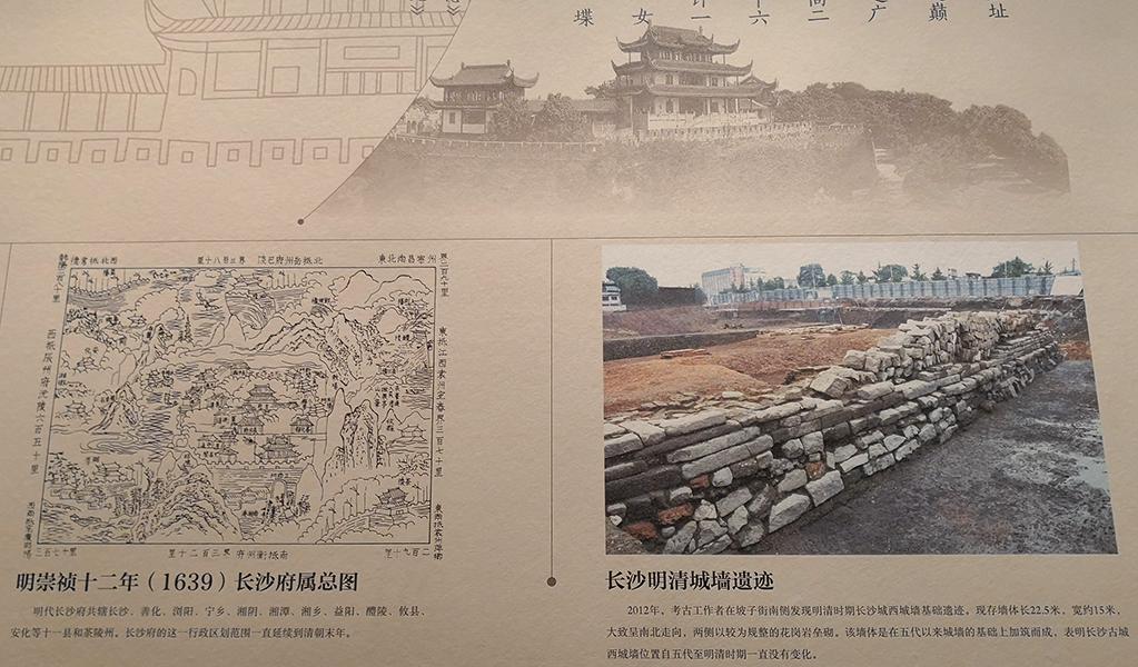 明代长沙府总图(左)长沙明清城墙遗址(右)
