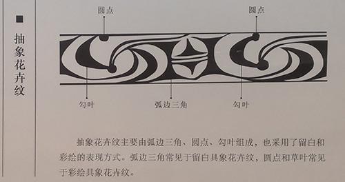 花卉纹从初期的写实慢慢抽象成由圆点、弧边三角以及勾叶纹组成的花瓣和叶片。