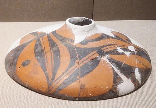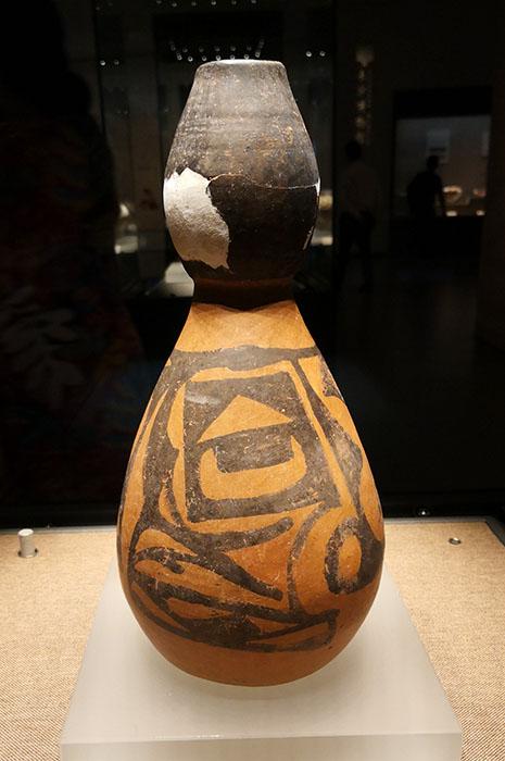 葫芦瓶是半坡文化的用来储藏的常见器形。葫芦原本就是原始先民日常使用的水器,所以模仿葫芦制作陶器也是十分自然的事情。