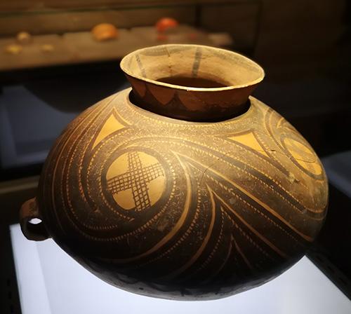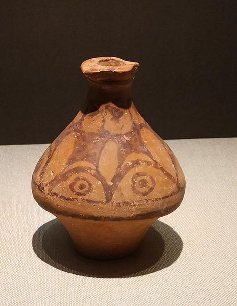 同时这件壶上的纹饰较我们之前看到的相比,略显抽象,逐渐向符号化发展。有学者指出,一个圆圈,里面画一个点的图案也是属于生殖崇拜的一种。