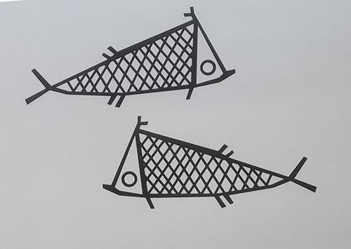另外两个带网的图案,一个网用12条线围成11×11=121的网格,另一个是9×10=90的网格(这个是刻意的对称还是巧合?他们有计数的概念吗?)在其他类似陶器上也出现过,是两条从侧面观察的鱼。“网”估计是想表现鱼身上的鱼鳞。当然你也可以理解为渔网,也许他们希望多捕些鱼?
