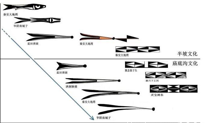 半坡文化的发源地在哪呢?根据社科院考古所王仁湘先生的研究,关中(陕西省中部)和关东(函谷关以东)都有使用三足器(比如:鼎)的传统,而半坡遗址里从未出现,说明半坡文化应该来自关中以西至渭河上游的地方(排除老官台遗址和大地湾遗址,它们都有三足钵)。
