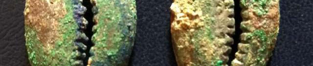 1976年妇好(约公元前1278-前1245年)墓出土,当时清理出6880枚,经鉴定为货贝,1件阿拉伯绶贝(也称阿文绶贝)、2件脉红螺。海贝产自我国台湾、南海(广东沿海、海南岛、福建厦门东山以南),反映商王朝与我国东海、南海海域有直接间接的联系,是极重要的证据。