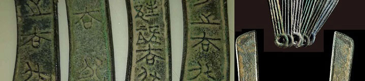 蚁鼻钱上多有币文。如“咒”、“紊”、“金”、“君”、“行”、“廉”、“忻”、“贝”、“匐”、“三”等十余种,其铸量巨大,品种繁多。