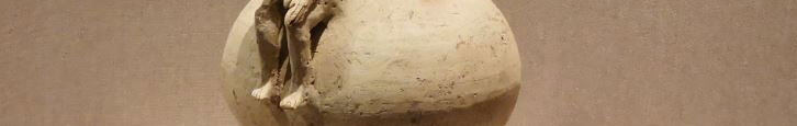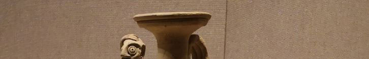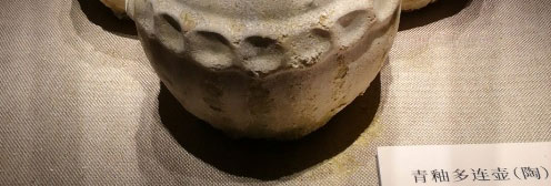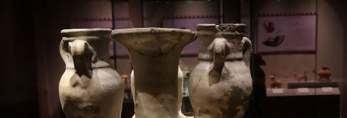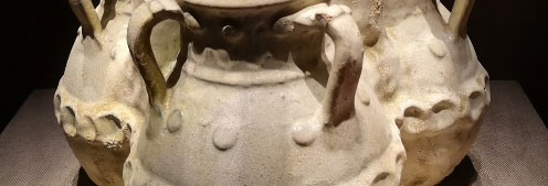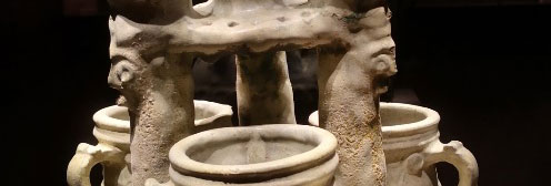 公元1~3世纪,伊朗西南部。上部中央一壶口被三个小双耳壶围绕,下部是三个较大的三耳壶。上下部以三根立柱连接,立柱上饰有人面纹,造型复杂,极为少见。