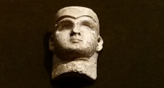 公元前14~前12世纪,今伊拉克境内。以石英粉烧制而成,可能是某个小型木制女性像的一部分。双耳窗口,眼睛、眉毛还有镶嵌技法的工艺痕迹。