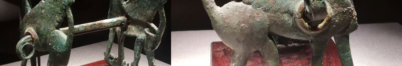 公元前1000年上半叶,伊朗胡齐斯坦地区。镳[biāo,马嚼子的两端露出嘴外的部分]。推测为祭祀所用器具或随葬明器。图案为法拉瓦哈,起源于古埃及或两河流域的人面翼兽形象,后成为祆教信仰的符号。