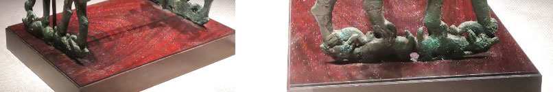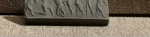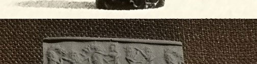 美索不达米亚(伊拉克境内);公元前2200年。大约是我国是尧、舜时期。上图为印章,下图为印纹,表现了狮子与人面牛身怪物战斗的场景,说明印章主人地位并不高。
