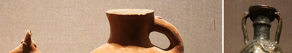 均为陶器。公元前1世纪—公元2世纪(左),公元2世纪-3世纪(右),处于帕提亚帝国(公元前247年-公元224年),对应我国的秦(公元前221年—前207)、汉(公元前202年~公元8年,公元25~220年)时期