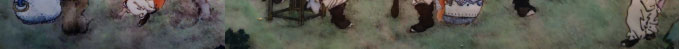 此图正中两株参天古树,树后围栏之前有巨幅山水屏风,方案之旁有四人对坐小酌;一身着淡黄长袍之人以手正冠,小童捧花簪在侧。左侧老梅斜枝,旁有童子煮茶。另有两高士或携琴,或提物相伴而来。画面取材于黄慎《广陵花瑞图》。人物众多而场景开阔,充盈着春郊簪花饮酒的喜庆氛围。整体画风与珠山八友之首的王琦非常像。