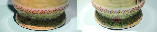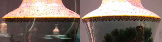这种图案把内外壁连起来,浑然一体的植物花卉构图,就叫做过墙花,或者过枝纹。