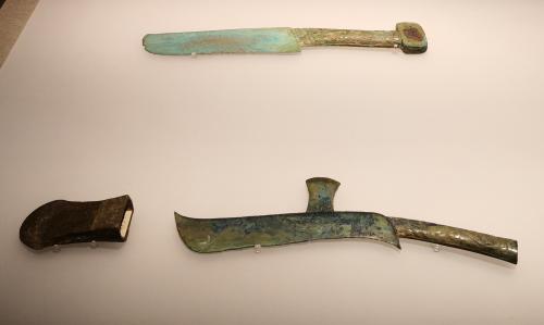 该器物形制比较特别,刀背上立斧,增加了刀的砍劈功能。斧的刃部比刀厚,劈砍时不容易折断。