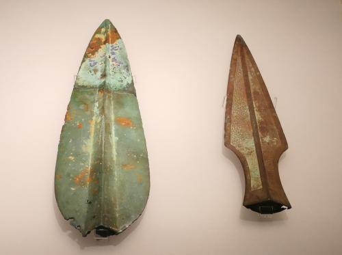 宽叶铜矛(左)、云雷纹铜矛(右)