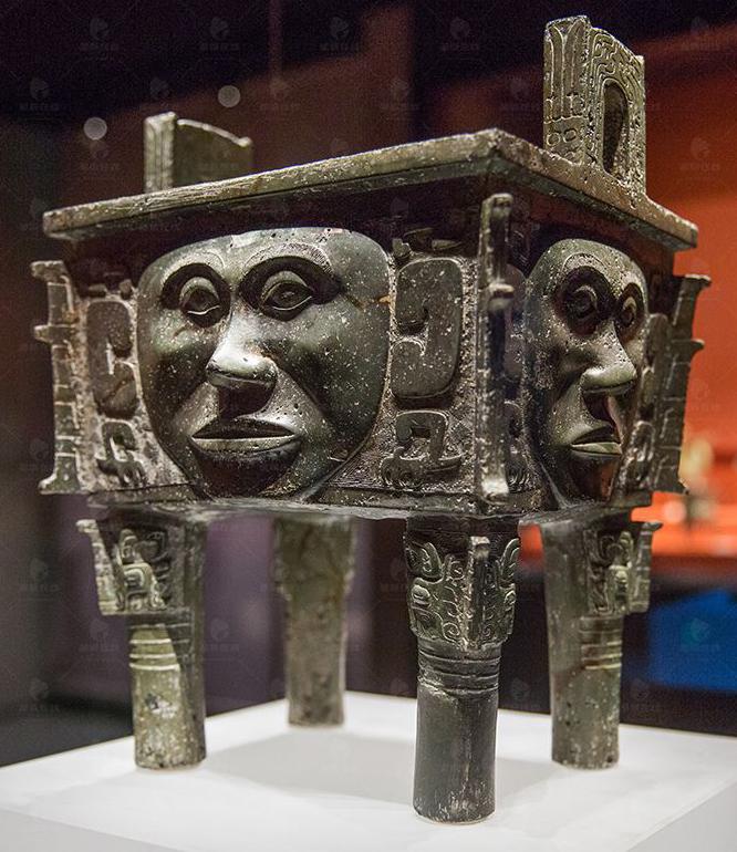 那些纹饰风格与中原同期青铜器相似,但是又带有地方特色的属于混合型。比如“皿方罍”、“大禾”人面纹方鼎、四羊方尊(高58.3厘米,口边长52.4厘米,重量34.5公斤)等。