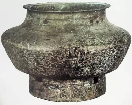 宁乡发掘的铜瓿是目前发现的商代铜瓿中体型最大的,重达61.9公斤,称为瓿王,在当时是一种酒器。也属于混合型,它圈足上的方形穿孔和矮而薄的扉棱是二里岗时期铜器的特点,而圆肩又是殷墟时期的特点。铜瓿肩部有4处铸造时留下的痕迹,推测原本是铸接有4个牺首。