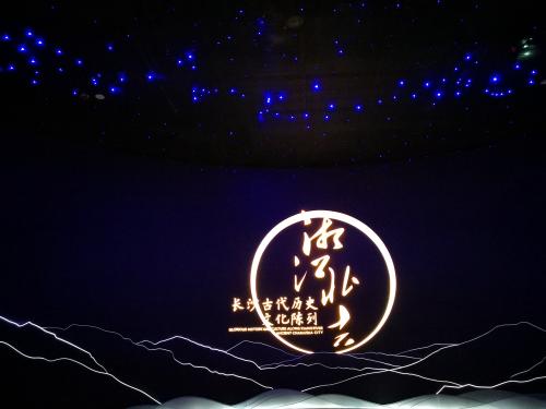 首先进入的是序厅,展示的是“星空下的山水洲城”。头顶满天繁星连成二十八宿中的南方七宿,若伸出双手去轻轻捧起星光,那些从轸宿发出的光点便会聚集起来,变成你手心里跳动着的“长沙”二字。星空照耀的大地是清代乾隆年间的长沙城示意图。