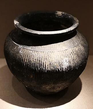 年代:战国,长沙五一广场水井出土。我国黑陶的出现可以追溯到距今四千多年的新石器时代晚期,是龙山文化的代表性器物,龙山文化尤以“蛋壳陶”最为著名。