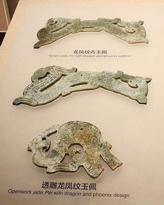 楚人尊凤,周王室尊龙。处于礼坏乐崩的春秋战国时期,楚文化为彰显“霸主”形象,玉器中的龙凤组合在一起表示地位平等,凤鸟大步前行,而龙却示弱,作反身躲避姿态。