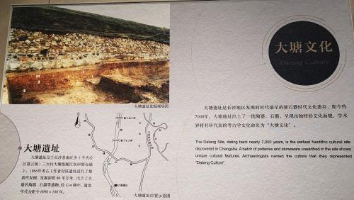 大塘遗址的文化类型与江汉平原的大溪遗址相似,说明长沙此时的古人已经脱离了原始的穴居生活,形成聚落,开始炊煮熟食,进入了母系氏族社会。用石斧和石凿开垦土地,用石镰收割谷物,还有了原始的制陶业。而北方,中原大地正处于仰韶文化时期(更高级些),部落多住窑洞、半地穴或地面起建的平房。典型代表有河南省渑池县仰韶村遗址、西安市东郊的半坡遗址等。