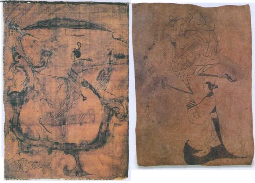 战国人物龙凤帛画(复制)和战国人物御龙帛画(复制)
