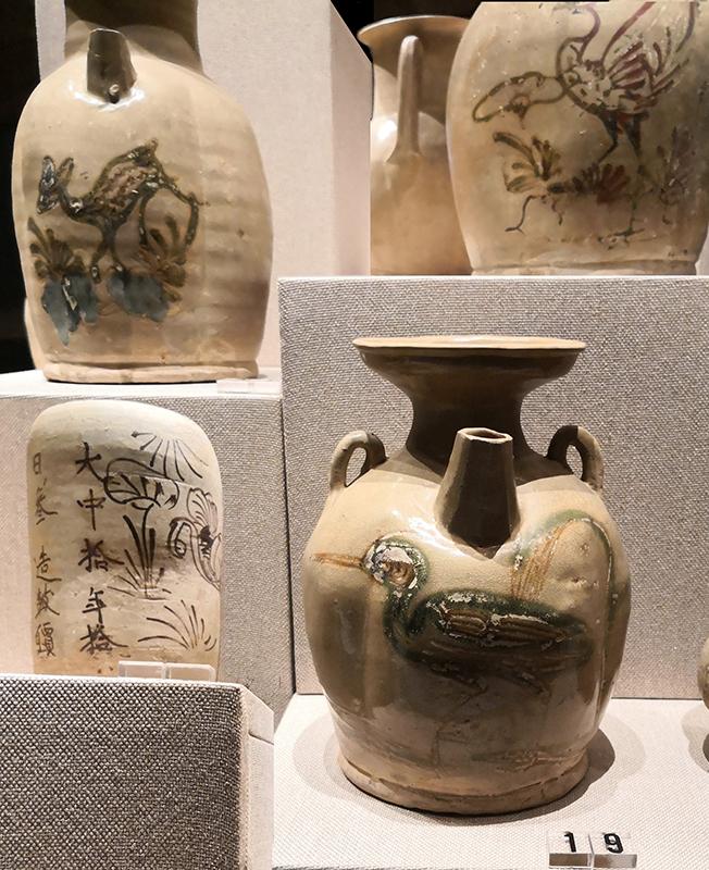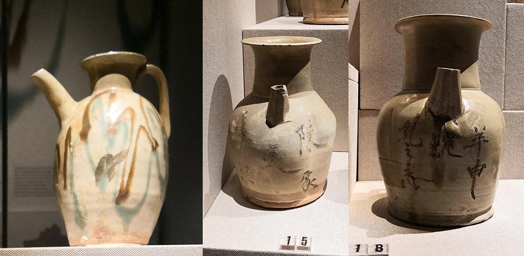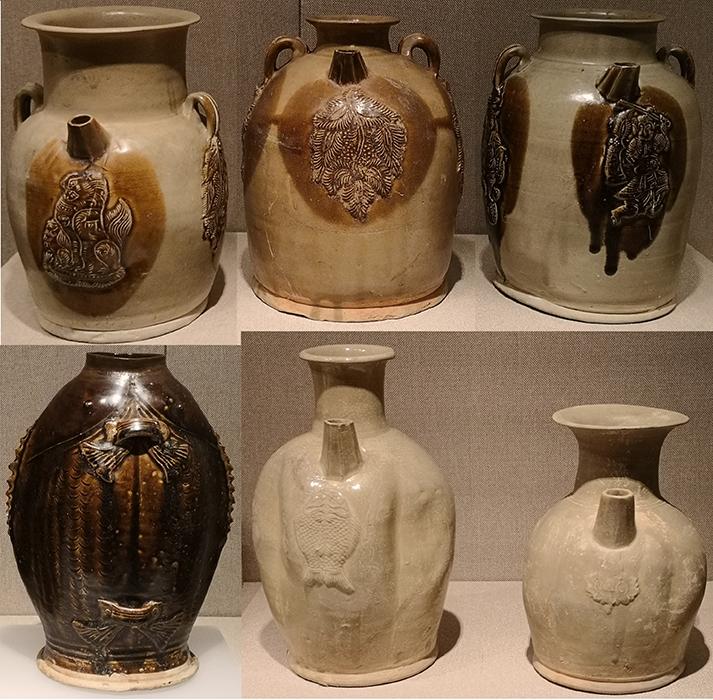 湘阴窑烧制的作品。鸡首造型均为雄鸡,因为雄鸡有辟邪消灾的作用,且“鸡”与“吉”谐音,反映了人们对吉祥安宁生活的期望。