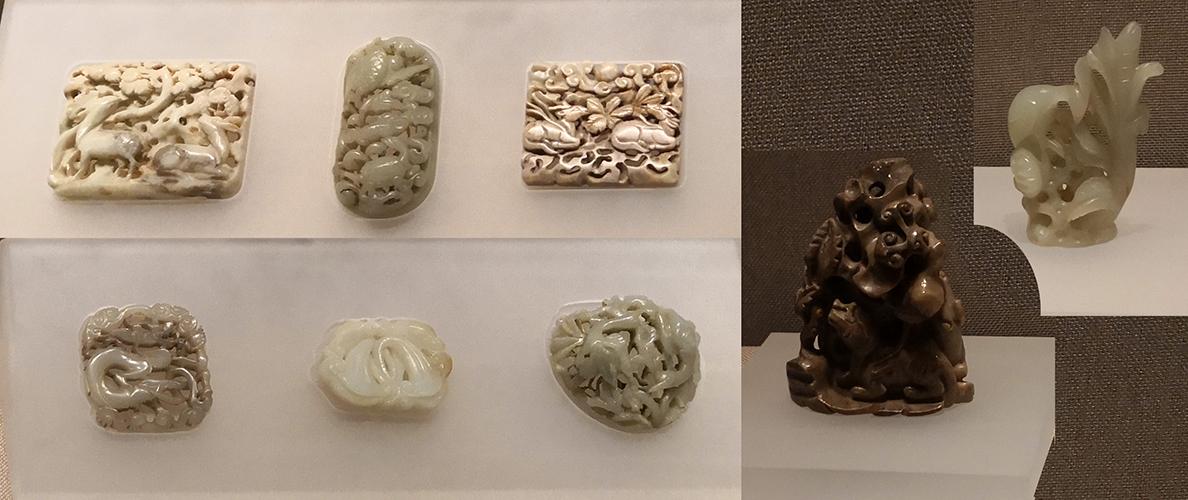 春水玉,主要是传达玉器的柔和之美。以天鹅、湖泊、海东青这样的动植物来进行构图。海东青是满族最高图腾。中文名鹧应,即肃慎语(满语)“雄库鲁”,意为世界上飞得最高和最快的鸟,有“万鹰之神”的含义。传说中十万只神鹰才出一只“海东青”