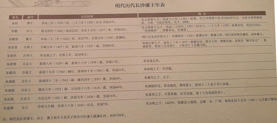 先后有潭王、谷王、襄王和吉王及其子孙共4代12位藩王就藩长沙,共计195年,对捍卫王室和加强湖南地区的统治起了一定作用。墙上呈现的是明代初年藩王分封图以及明代历代长沙藩王年表。下方这个明代吉藩九龙纽寿山石印,九条龙的规格与皇帝同级,体现了藩王较高的地位。