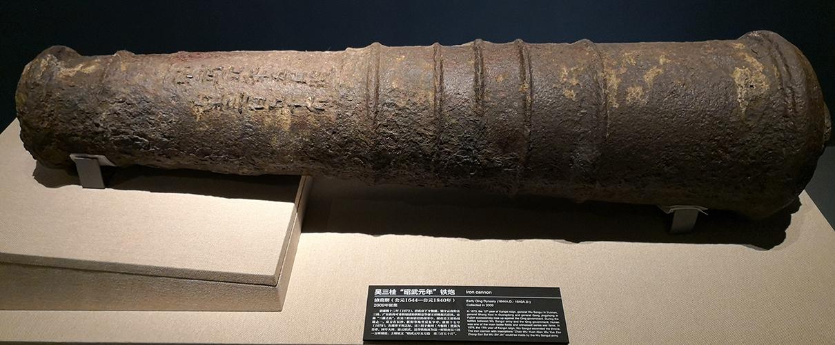 康熙二十年(1681年)清朝平定吴三桂叛乱,长沙进入了新的历史时期。这枚铁炮就是当年三藩之乱的物证。
